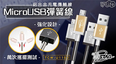 平均最低只要99元起(含運)即可享有【TCSTAR】MicroUSB鋁合金彈簧充電傳輸線(TCW-U1100)1入/2入/4入/10入,顏色:金色/鐵灰?